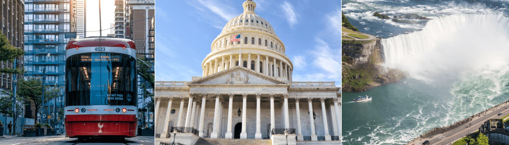 Στη συνέχεια ακολουθεί σίγουρα μία από τις πιο «δυνατές» εμπειρίες του ταξιδίου μας, Κρουαζιέρα μέσα στους Καταρράκτες. Θα νιώσουμε τη απίστευτη ενέργεια του νερού, καθώς σταγόνες από τους καταρράκτες θα χαϊδεύουν το πρόσωπό μας και θα τραβήξουμε εντυπωσιακές φωτογραφίες, που θα θυμίζουν καρτ ποστάλ. Αμέσως μετά την ξενάγηση αναχωρούμε για την πρώτη πρωτεύουσα του Καναδά, το πανέμορφο Βρετανικό Niagara on the Lake. Θα περάσουμε από μαγευτικά τοπία κι ιστορικά φρούρια, σε μία διαδρομή δίπλα στο ποτάμι. Η περιοχή είναι γεμάτη αμπελώνες, άλλωστε φημίζεται για το κρασί της. Η γραφική μικρή πόλη του Niagara on the Lake βρίσκεται στις όχθες της λίμνης Οντάριο και μοιάζει σαν να μην την έχει αγγίξει ο χρόνος από τα μέσα του 19ου αιώνα. Μία πόλη ρομαντική, πολύχρωμη, γραφική κι άκρως σαγηνευτική, είναι το κατάλληλο μέρος για να απολαύσουμε τη βόλτα μας. Άλογα τραβούν άμαξες δίπλα σε χαμηλά σπίτια βγαλμένα από τη Βρετανική επαρχεία. Πολύχρωμα λουλούδια στολίζουν κήπους και μπαλκόνια, ενώ τουρίστες και ντόπιοι συγκεντρώνονται σε πάρκα, κάτω από τις σκιές των δέντρων, κάνοντας πικνίκ. Κουκλίστικες καφετέριες και μικρά μαγαζιά κοσμούν τα πεζοδρόμια της πόλης, ενώ στον κεντρικό δρόμο της πόλης βρίσκεται και το Prince of Wales Hotel, το ξενοδοχείο που έμεινε ο τότε Πρίγκιπας Κάρολος, με τη σύζυγό του Νταϊάνα, κατά το μήνα του μέλιτός τους. Έπειτα συνεχίζουμε για το Τορόντο, τη «Νέα Υόρκη του Καναδά», όπως συχνά χαρακτηρίζεται. Η ξενάγησή μας ξεκινά από τον Πύργο CN, το πιο εμβληματικό κτήριο της πόλης. Στη βάση του βρίσκεται και το Roger Center, ένα σύμπλεγμα σταδίου – ξενοδοχείου. Η ξενάγηση συνεχίζεται στο Παλαιό και Νέο Δημαρχείο, το περίφημο εμπορικό κέντρο Eaton Center, το λιμάνι και τη μεγάλη ελληνική συνοικία του Ντάνφορθ (Greek Town).
