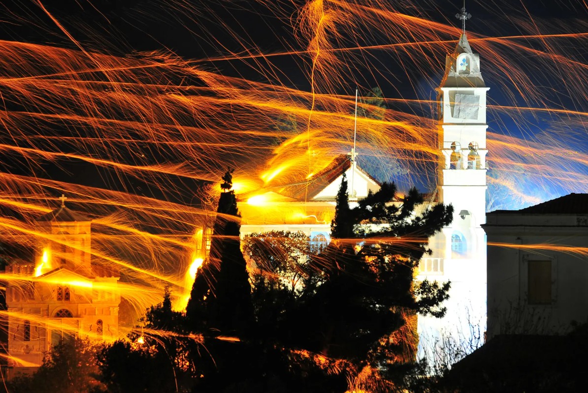 Πρόγευμα μπουφέ και πρωινό ελεύθερο. Για όσους επιθυμούν σας προτείνουμε πεζή μετάβαση στον Ιερό Ναό της Παναγίας Ευαγγελιστρίας Χίου, όπου με κρότους στα στασίδια και χτυπώντας τα Σήμαντρα στέλνουν το μήνυμα της Πρώτης Ανάστασης, ενώ ο ιερέας σκορπάει δαφνόφυλλα, σύμβολα της νίκης του Χριστού. Περίπου στις 12 το μεσημέρι, ξεκινάμε για το κεντρικό τμήμα του νησιού. Σε υψόμετρο 650 μέτρα από την επιφάνεια της θάλασσας και 12 περίπου χλμ από το κέντρο της πόλης, βρίσκεται η Νέα Μονή της Χίου. Πρόκειται για ένα παλαιό, ιστορικό μοναστήρι που ιδρύθηκε το 1042 μ.Χ. με χορηγία του αυτοκράτορα του Βυζαντίου Κωνσταντίνου του Μονομάχου και σώζονται υπέροχα ψηφιδωτά της Μεσοβυζαντινής περιόδου (παρά την καταστροφή της Μονής από τους Οθωμανούς το 1822, όπως και το 1881 από τον καταστροφικό σεισμό). Το 1990 ανακηρύχθηκε Μνημείο Παγκόσμιας Πολιτιστικής Κληρονομιάς υπό την προστασία της Unesco. Επόμενη στάση στον Ανάβατο, τον “Μυστρά του Αιγαίου” που βρίσκεται στην κορυφή ενός απόκρυμνου λόφου. Επόμενος σταθμός μας τα Αυγώνυμα, ένα παλαιότατο, προ-μεσαιωνικό καστροχώρι χτισμένο πάνω σε ένα βραχώδη λόφο ανάμεσα σε πευκοδάσος με τα πέτρινα σπιτάκια σε σχήμα κύβου με τα μικρά παράθυρα, τα στενά δρομάκια και η λιθόστρωτη πλατεία είναι κάποια από τα χαρακτηριστικά του. Εδώ θα θαυμάσουμε τη μαγευτική θέα και θα έχουμε χρόνο για γεύμα (έξοδα ατομικά). Μην παραλείψετε να δοκιμάσετε το εξαιρετικό φαγητό στην κεντρική πλατεία του χωριού. Επιστρέφουμε στο ξενοδοχείο για ξεκούραση. Το βράδυ θα μεταφερθούμε στον Βροντάδο όπου θα παρακολουθήσουμε το έθιμο του Ρουκετοπόλεμου, γνωστό από την εποχή της Τουρκοκρατίας, όπου το βράδυ της Ανάστασης χιλιάδες αυτοσχέδιες ρουκέτες εκτοξεύονται ανάμεσα στις δύο εκκλησίες της περιοχής, την Παναγία Ερειθιανή και τον Άγιο Μάρκο. Οι Ενορίτες της Παναγίας Ερειθιανής έχουν ως στόχο να πετύχουν με τις ρουκέτες τους τον τρούλο και το έμβλημα του Αγίου Μάρκου ενώ οι ενορίτες του Αγίου Μάρκου το ρολόι του καμπαναριού της Παναγίας Ερειθιανής. Μετά την Ανάσταση επιστροφή στο ξενοδοχείο μας για το Αναστάσιμο δείπνο. Διανυκτέρευση.