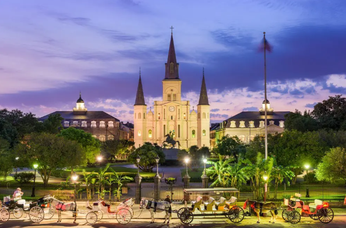 Η σημερινή μας ξενάγηση θα αρχίσει με τη γαλλική συνοικία, όπου θα δούμε τα αποικιακού ρυθμού αρχοντικά με τα δαντελωτά περίτεχνα κιγκλιδώματα των μπαλκονιών από σφυρήλατο σίδερο, τα ξύλινα παντζούρια και τους παστέλ τοίχους. Στο κέντρο της παλαιάς πόλης θα περάσουμε από την πλατεία Τζάκσον, θα δούμε το παλαιό Δημαρχείο, το παλαιό κτήριο του Επισκόπου και τον ιστορικό ναό του Αγίου Λουδοβίκου. Συνεχίζουμε με την πλατεία του Στρατηγού Λη και την αριστοκρατική συνοικία του κέντρου Garden District. Η συνοικία δημιουργήθηκε από τους νεοφερμένους Αμερικανούς, μετά την αγορά της Λουιζιάνας από τους Γάλλους, και οι δρόμοι της φέρουν ονόματα από την ελληνική Μυθολογία. Θα δούμε πολλές επαύλεις με πανέμορφους κήπους και το μεγαλειώδες Superdom. Η μέρα θα κλείσει με κρουαζιέρα στο λιμάνι της πόλης πάνω σε γραφικό Steam boat της Λουιζιάνα, το οποίο θα μας μεταφέρει σε μια άλλη εποχή.